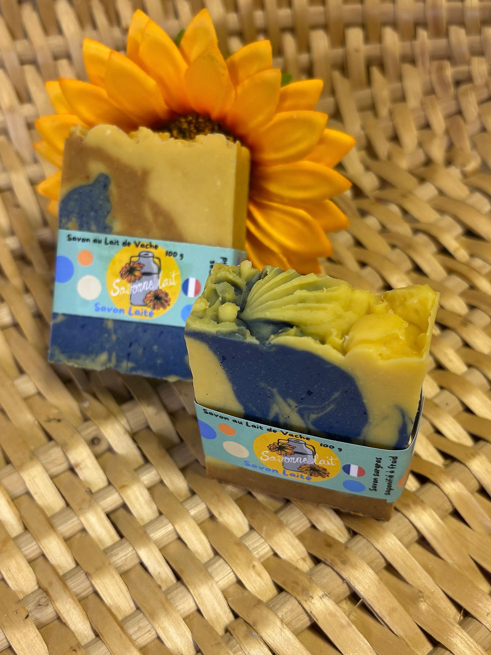 Du lait de vache bio pour l’hydratation, des huiles françaises bio, des poudres minéral et végétales, des parfums et huiles essentielles française le tout pour un savon doux et remplie de vertu pour laisser votre peau la plus douce possible.